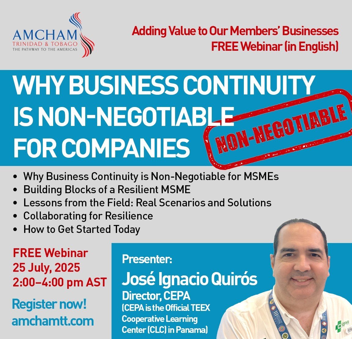 AMCHAMTT -BCP Webinar: Why Business Continuity Is Non-Negotiable For Companies